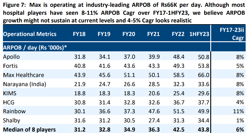 2. Avg. revenue per operational bed - ARPOB is among the lowest in the industry.