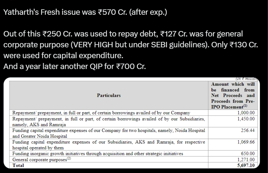 1. A very high amount of proceedings from the Fresh issue was set aside for general corporate purpose