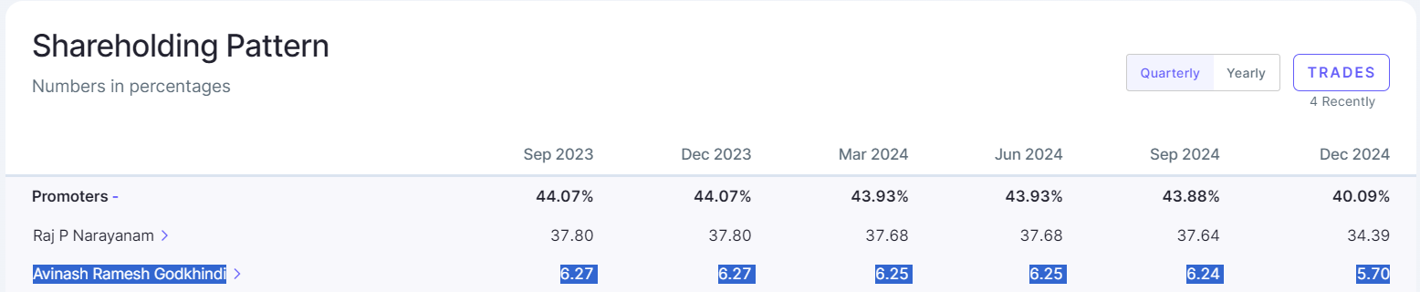 Zaggle raised 595 crores through qualified institutional placement (QIP) at Rs 523.20 per share. The QIP took place last December and that is why the promoter holding has gone down