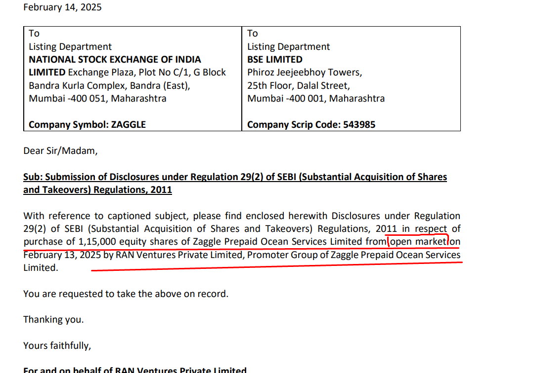 1,80,000 shares purchased from open market by the promoter group on 13th and 14th Feb 25