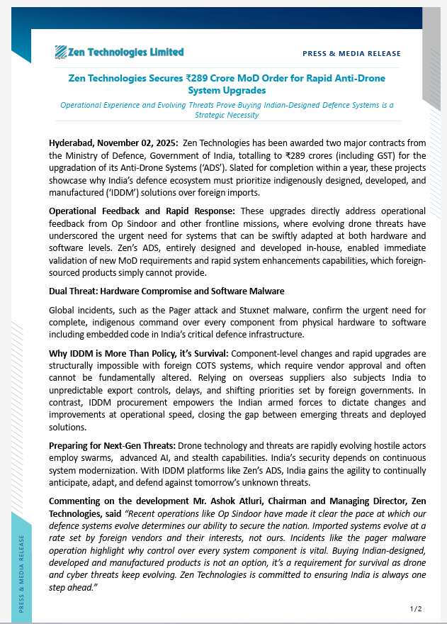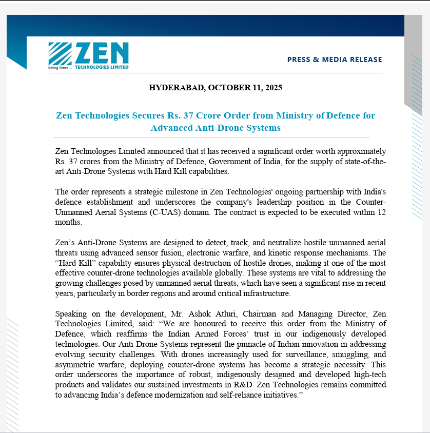 Antidrone systems now account for 40% of Zen’s revenues and they have been getting orders from Indian armed forces.