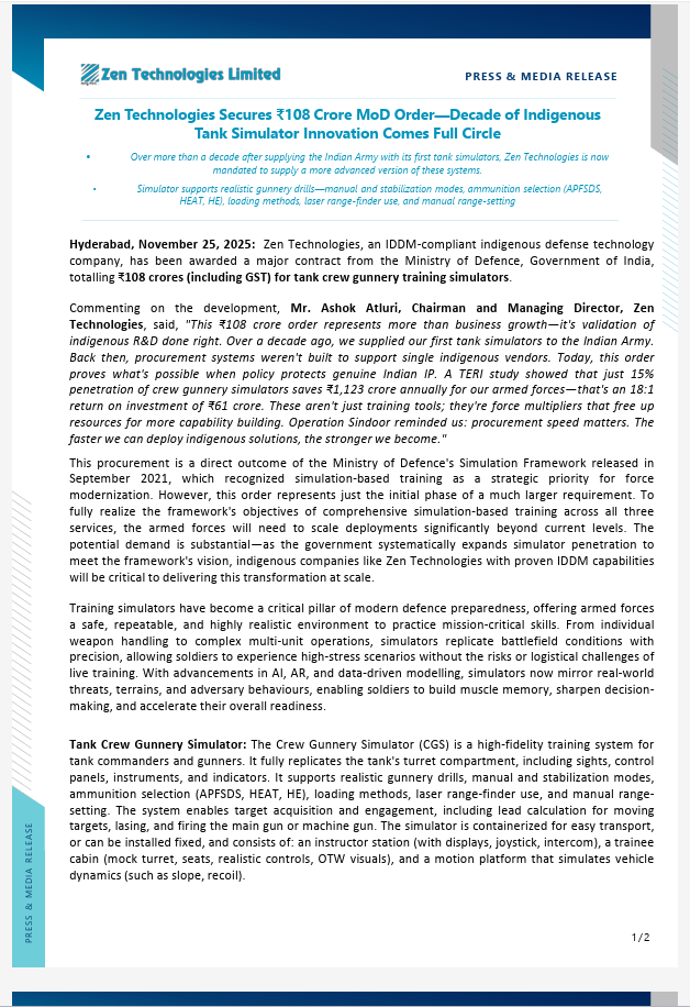 The main orders the are getting is for Simulator only.. There is no data available how efficient the Anti Drone system of Zen is .